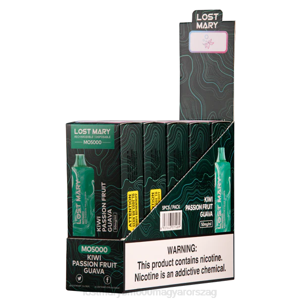 a kiwi fuse lost mary mo5000 újratölthető vape (korábbi nevén kiwi passiógyümölcs guava) kivi, maracuja és guava aromák trópusi keverékét használja.